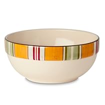 The Sorrento Hand Painted Stripes Bowl has a lovely multi-colored rim design and is the perfect way to kick off a Signature Sorrento collection. Equip a new apartment home even dorm room with the Sorrento collection. It’s a steadfast collection that is sure to please. With plates mugs and a multitude of serving and cooking accessories you can build your Sorrento collection over time. The 100 percent lead-free stoneware is durable enough to withstand the microwave and dishwasher for years of everyday use. For entertaining or quiet nights at home the Sorrento collection is made to last.